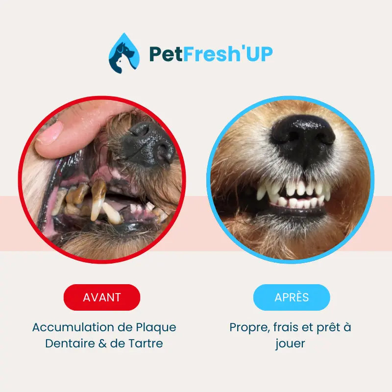 2️⃣ Après un détartrage véto : Fresh'Up™ prévient la reformation du tartre, vous évitant une nouvelle intervention coûteuse (300-800€).