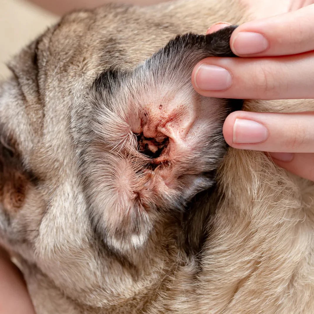 Pendant ce temps, le problème s'aggrave : otites externes (80-150€ de frais véto), infections récurrentes, douleur pour votre animal.